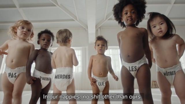 That’s what Buzzman imagined, by proposing to put words on the diapers, then, through a punch film of 1’20, to allow the babies to denounce themselves the ingredients, to forcefully demand a real healthy alternative! Silkscreened diapers that parents can find delivered home thanks to the subscription system and create sentences through the day by changing their baby.